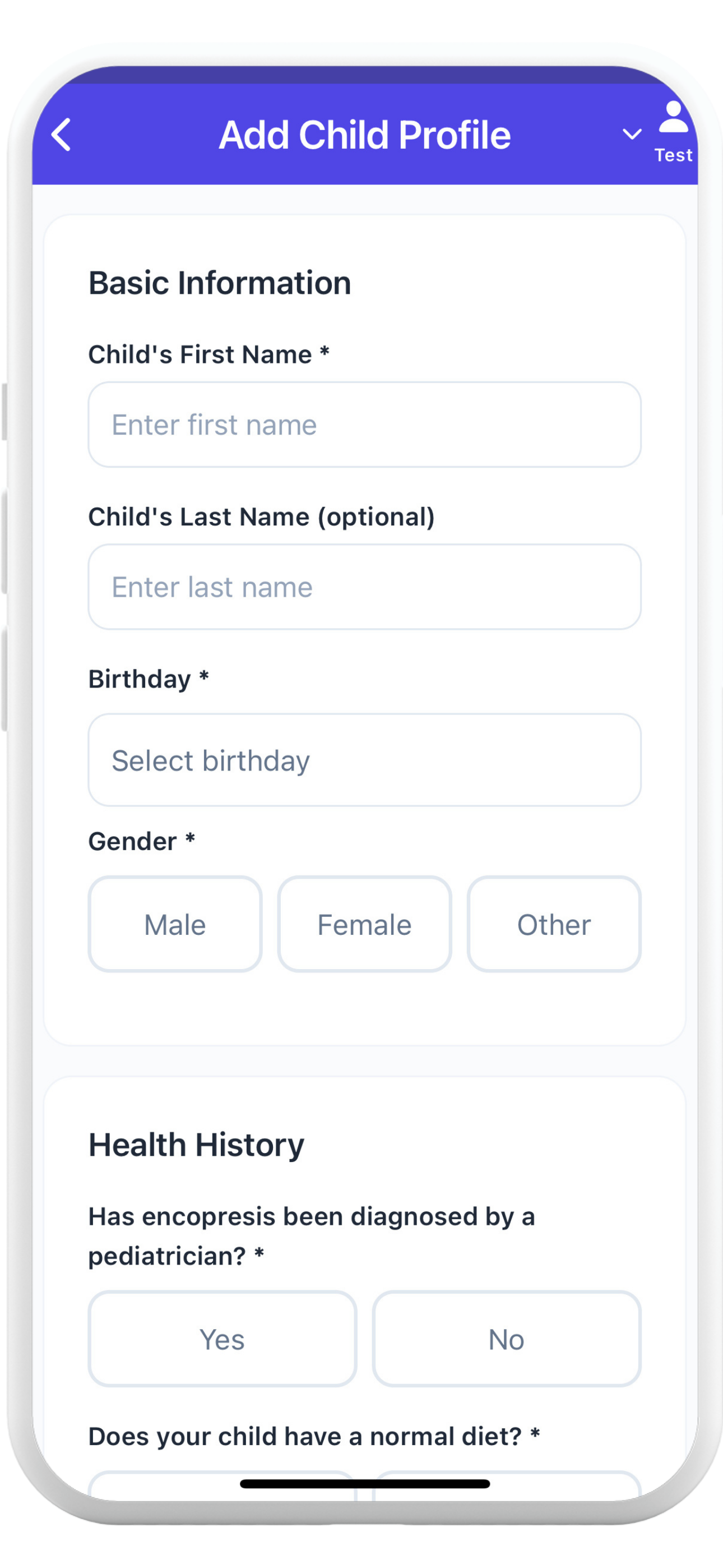 Create your child's profile