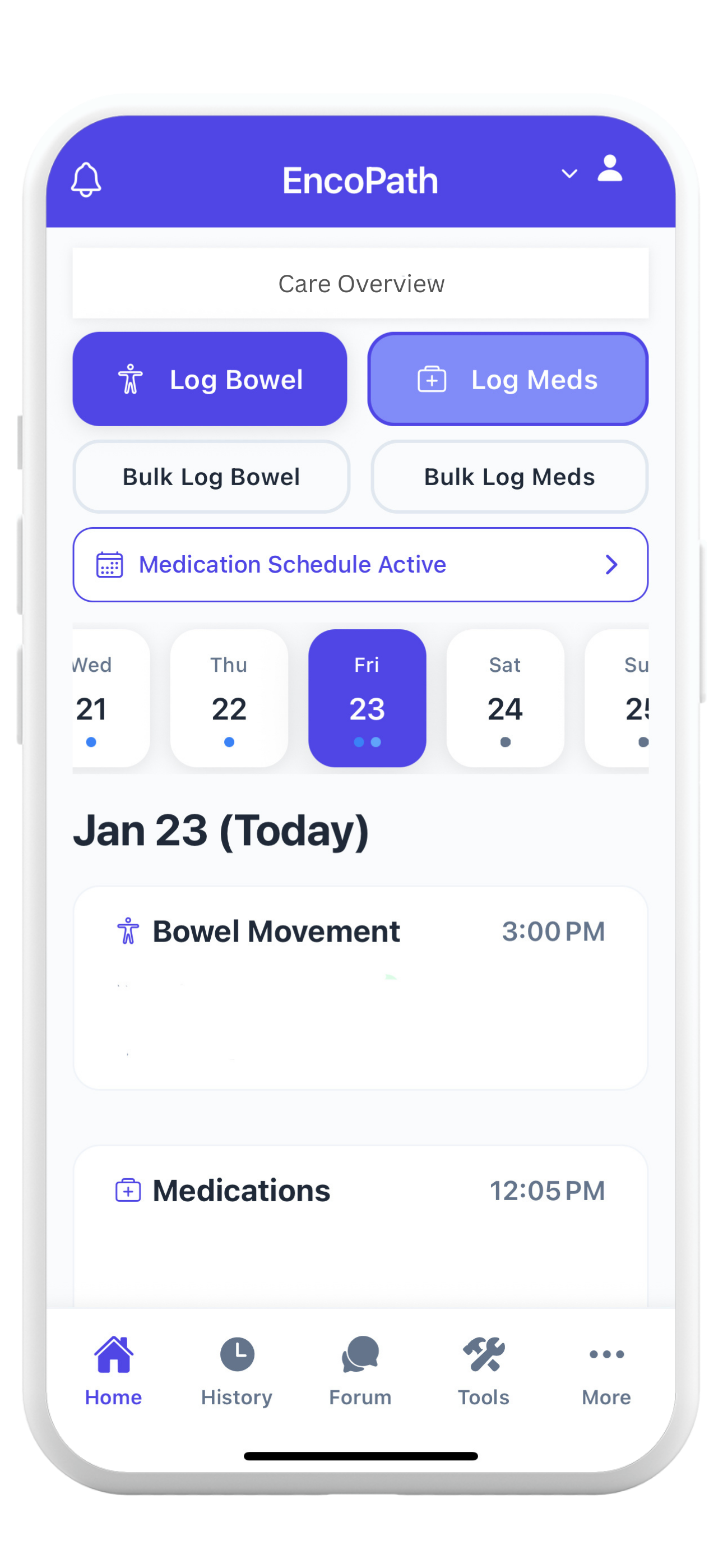 Track bowel movements, medications, and any notes throughout the day. Quick and easy logging from anywhere.